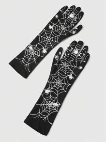 Goth 1pair Women Spider Web Design Arm Sleeves, For All Seasons