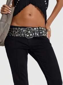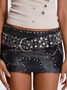 Goth 1pc Black Metal Rivet Hollow Design Decorative Belt, Suitable For Y2K, Baddie, Retro Punk Style, Unisex For Daily, Travel, Party, Gathering, Shopping