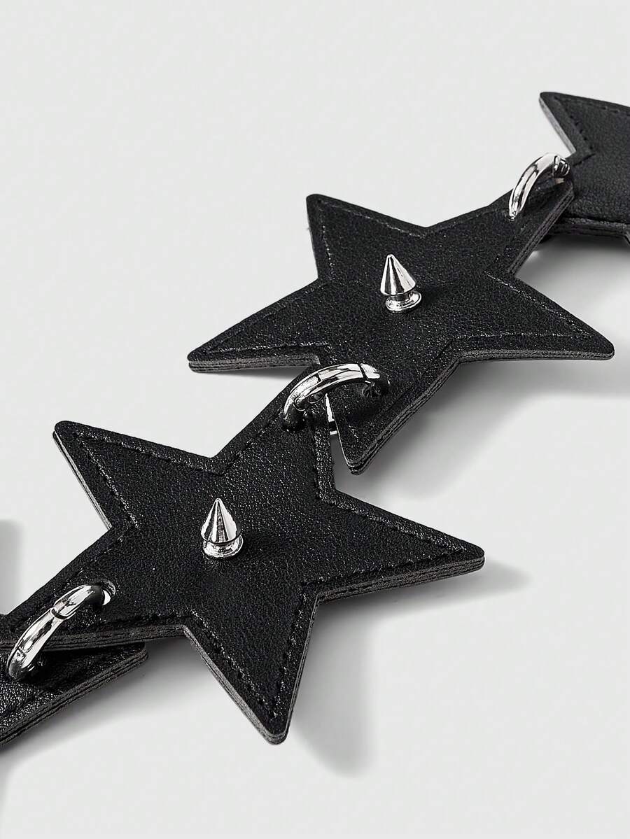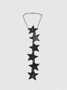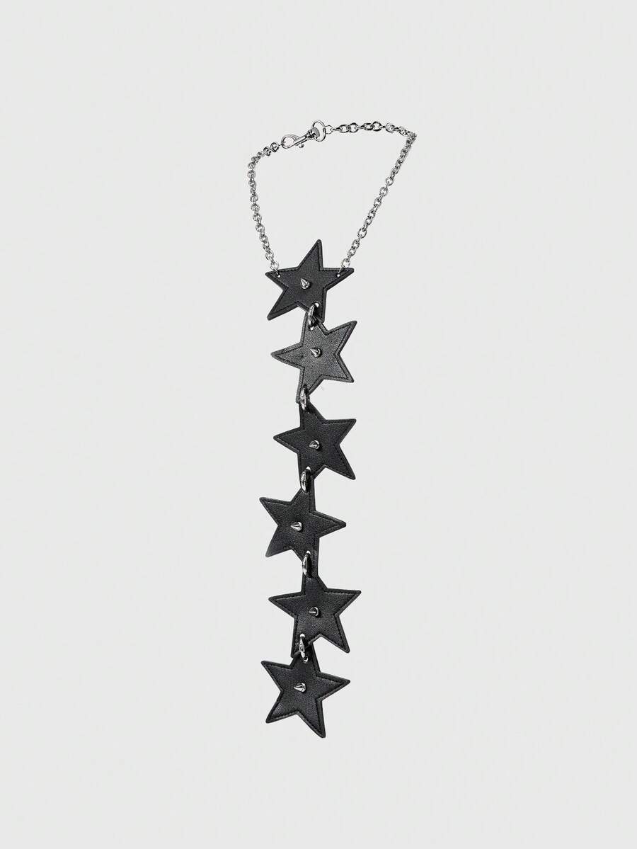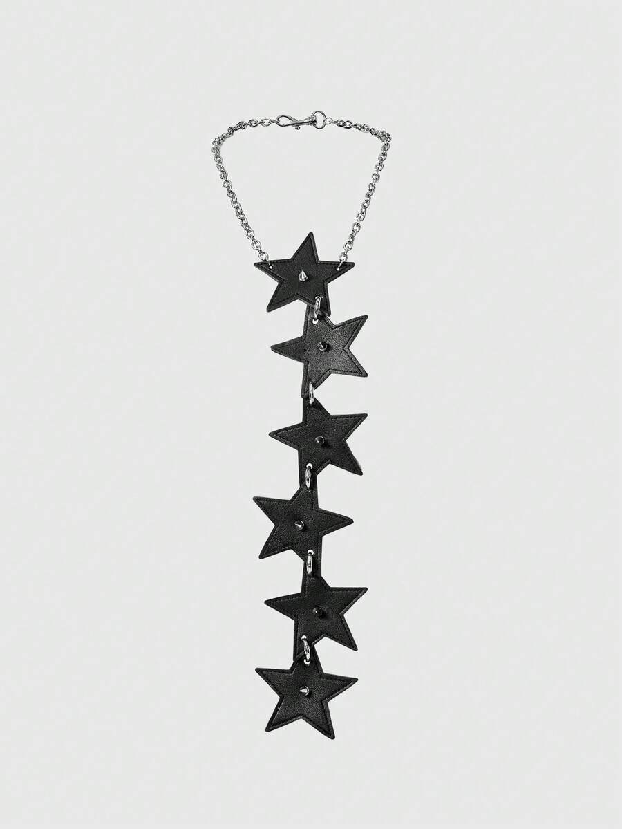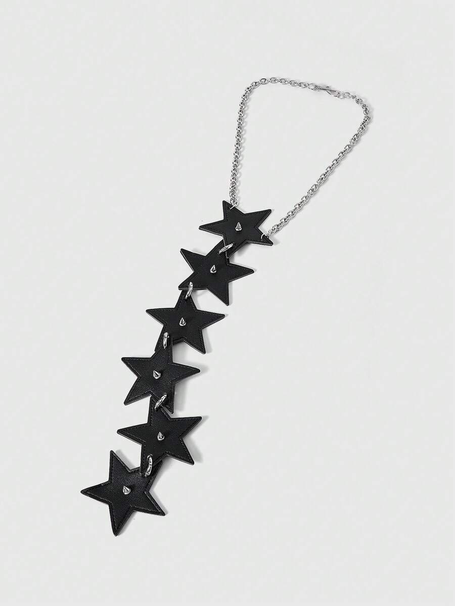 Goth 1pc Black Star Rivet Ring Chain Necklace Tie Decoration, Y2K Baddie Punk Style Unisex Accessory Suitable For Daily Wear, Party, Gathering, Shopping