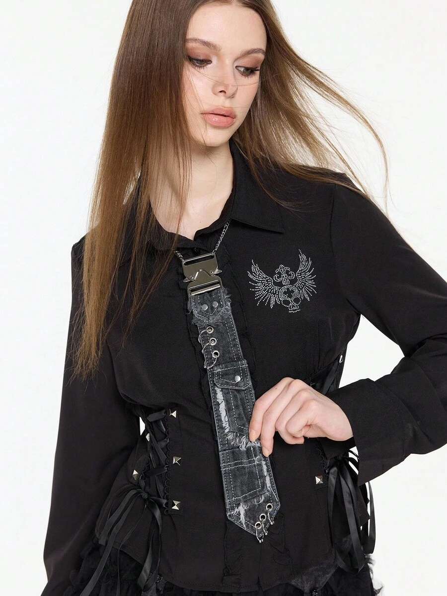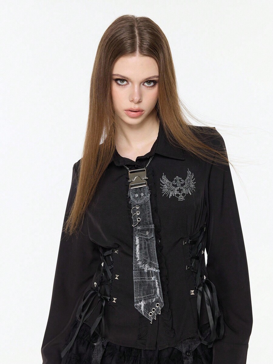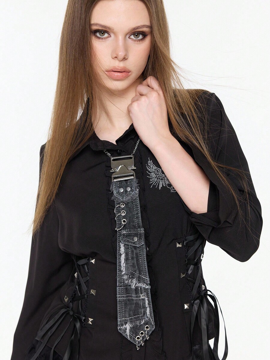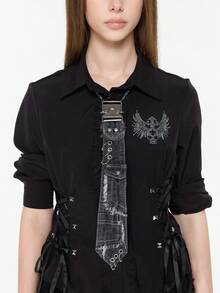 Goth 1pc Black Y2K Punk Metal Ring Accessories, Multiple Eye & Pocket Design, Distressed Edge Necktie For Women, Personalized Cool Unique Decorative Ornaments