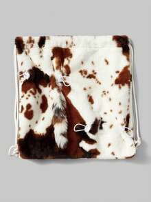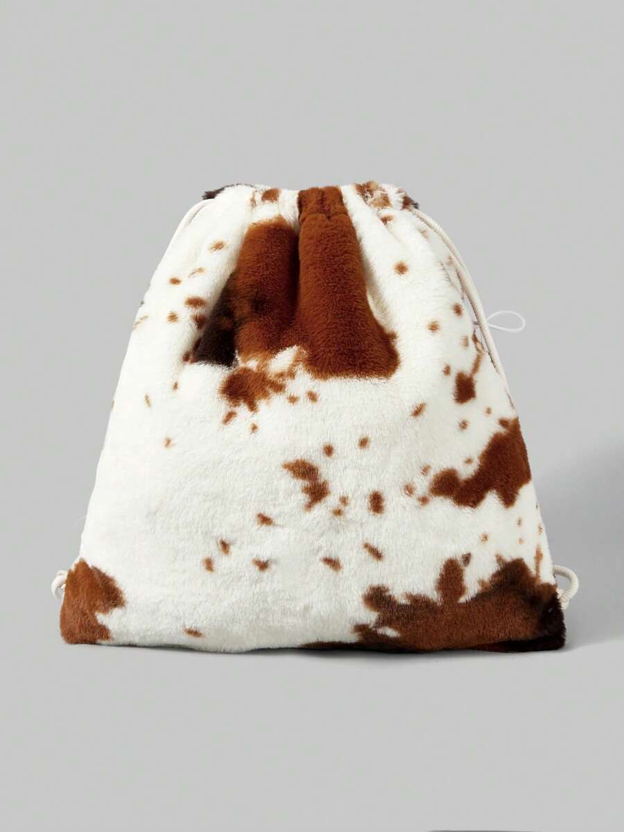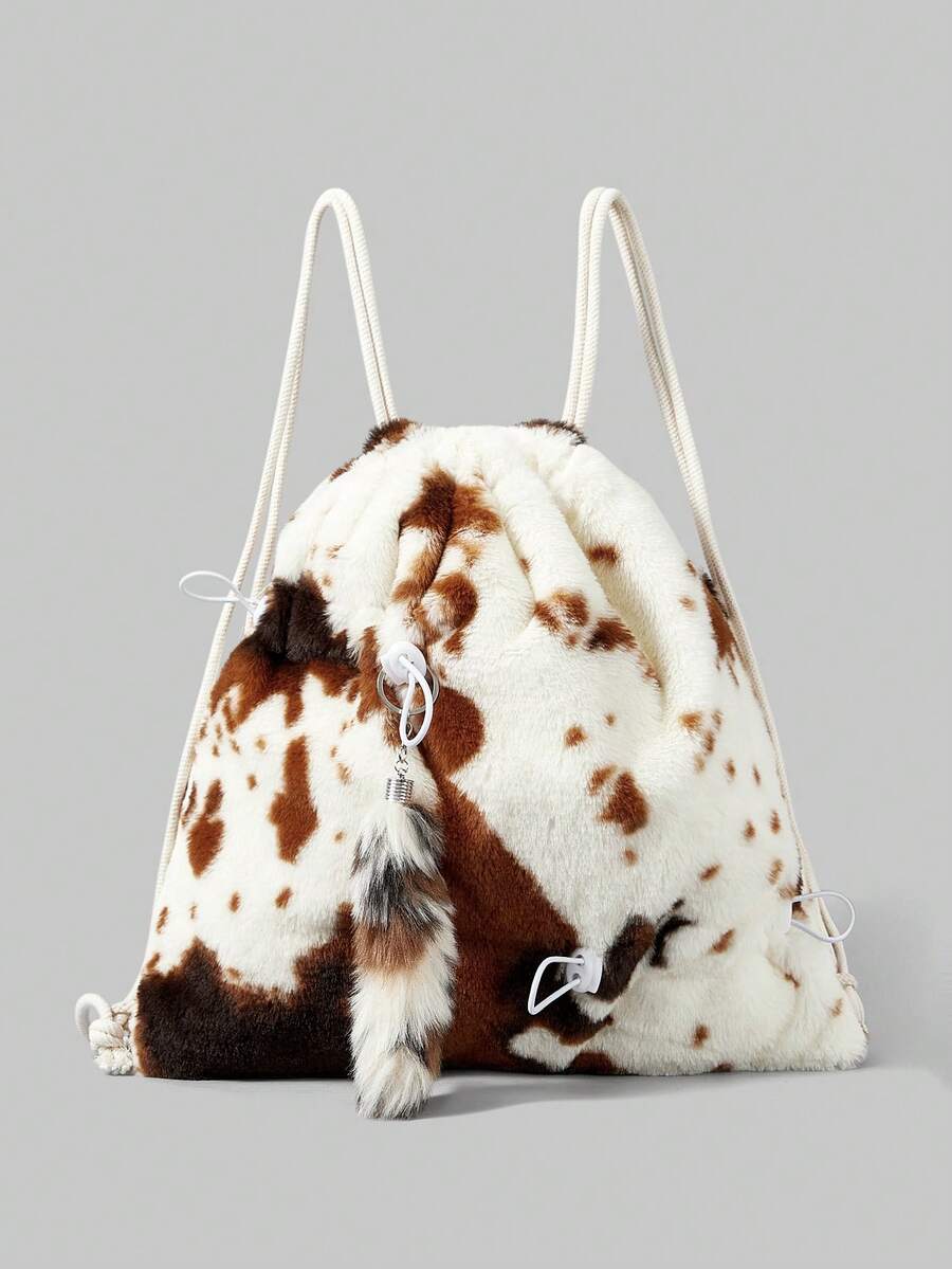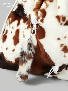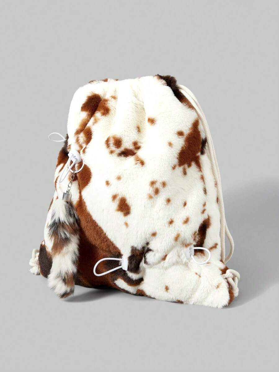 Goth 1pc Brown Y2K Chic Minimalist Cow Print Furry Tail Drawstring Decor, Suitable For Backpacks, College, Shopping, Commuting, Sports, Travel