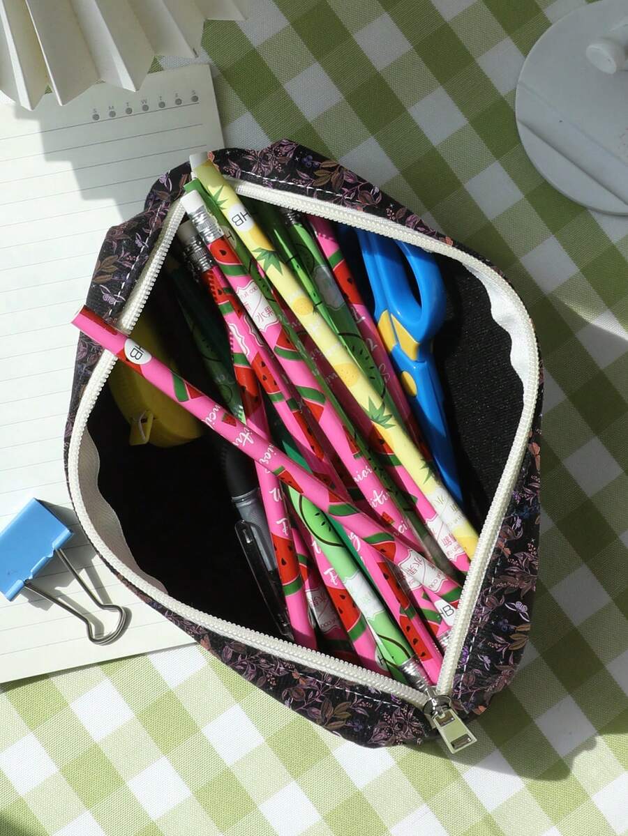 Goth 1pc Butterfly & Plants Print Pencil Case
