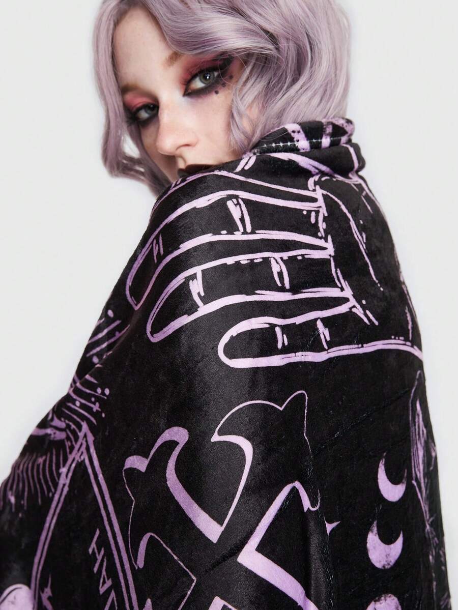 Goth 1pc Cat & Moon Pattern Throw Blanket,Cute Washable Throw Blanket For Couch And Bed