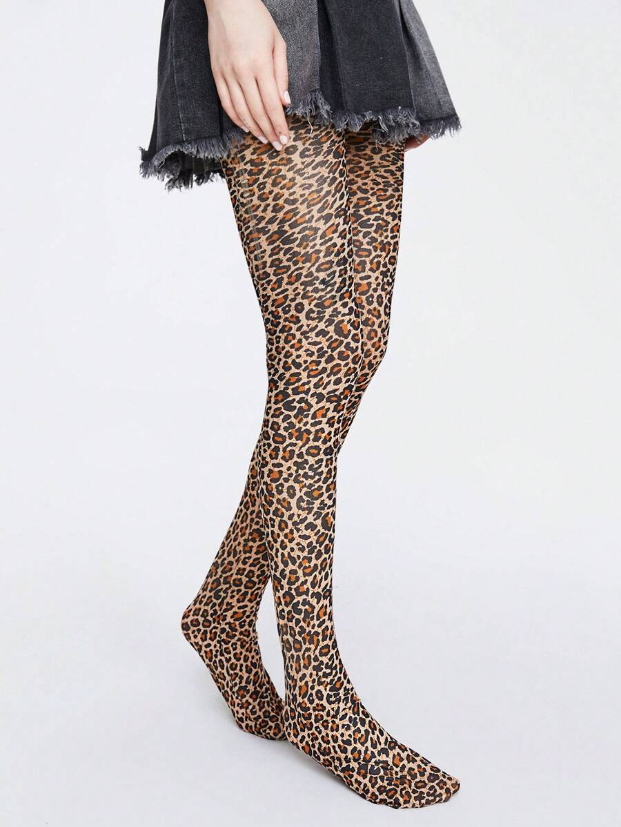 Goth 1pc & Cool Black Leopard Pattern Street-Style Stocking