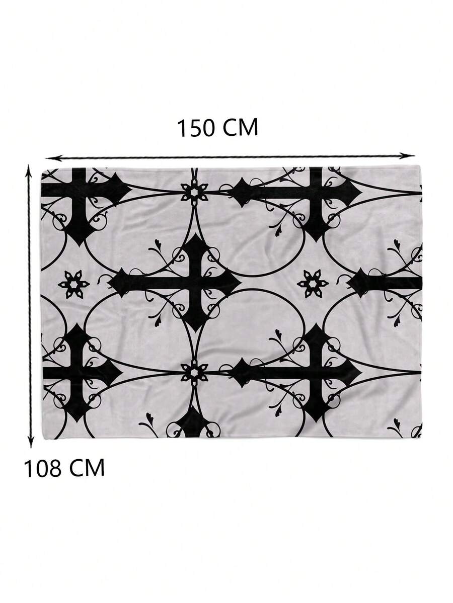 Goth 1pc Cross Geometric Pattern Throw Blanket,Casual Washable Decorative Throw Blanket
