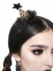 Goth 1pc Elegant & Cute Fashion Star Sequin Lace Christmas Tree Design Hair Clip, Suitable For Girls Daily Wear Or Stage Performance, Holiday Gift