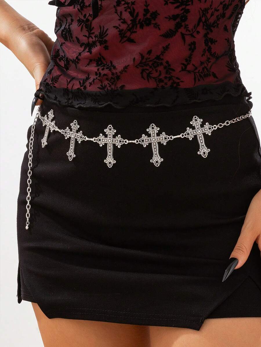 Goth 1pc Fashionable Punk Star Cross Chain Waist Belt, Suitable For Women Halloween Party Wear