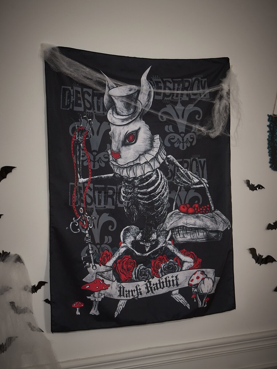 Goth 1pc Flower & Cartoon Rabbit Print Tapestry
