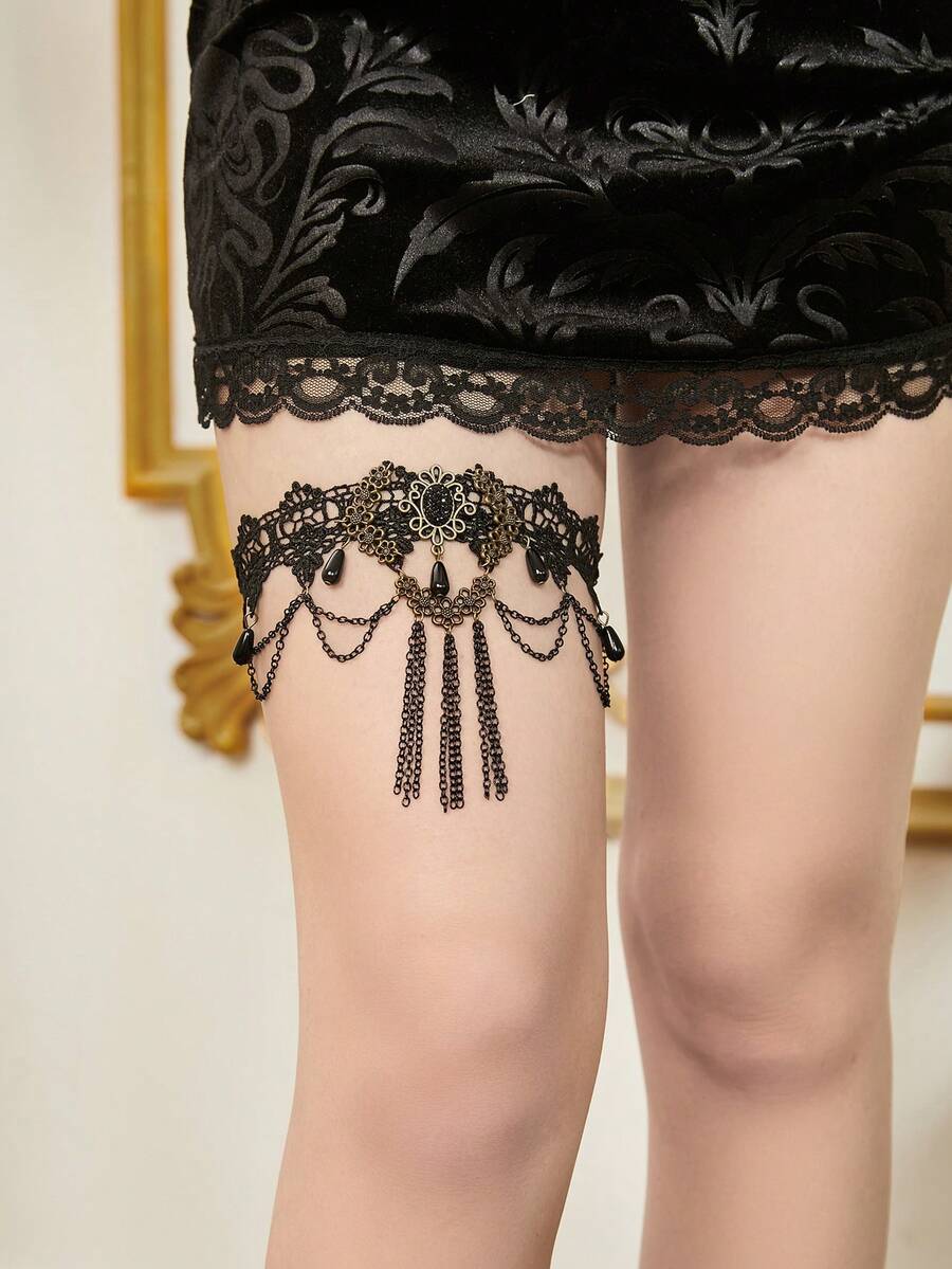 Goth 1pc Funky Stone Decor Lace Thigh Chain For Women For Daily Decoration