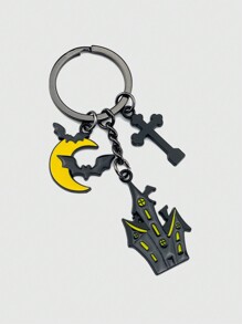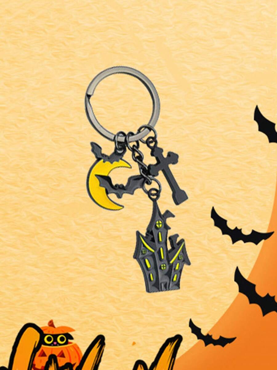 Goth 1pc Funny Cartoon Halloween Haunted House Moon & Bat Shaped Keyring Party Favor Keychain