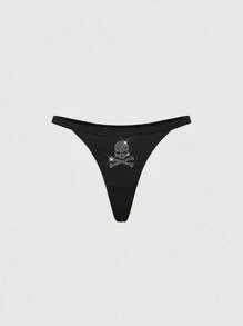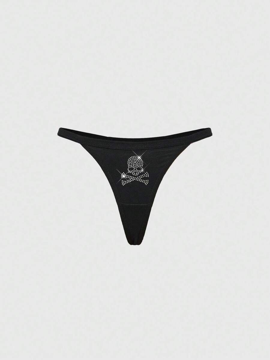 1pc Gothic Skull Rhinestone Decorated Thong Panty, Halloween