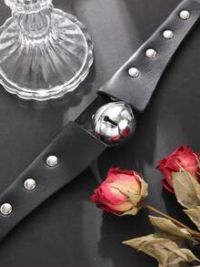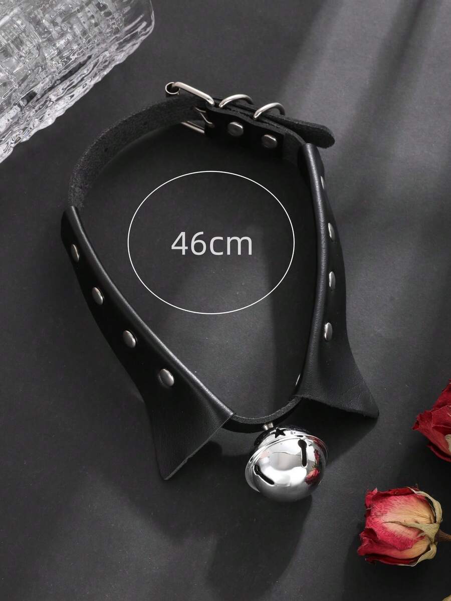 Goth 1pc Hip-hop Punk Style Exaggerated Bell Design Collar For Women, Made Of Pu Leather