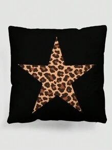 Goth 1pc Leopard Spotted Star Graphic Cushion Cover, Plush Printed Square Pillow Case, Applicable For Daily Home Decor In Living Room & Bedroom, Sofa Throw Pillow Case, Car Pillow Cover, All Season