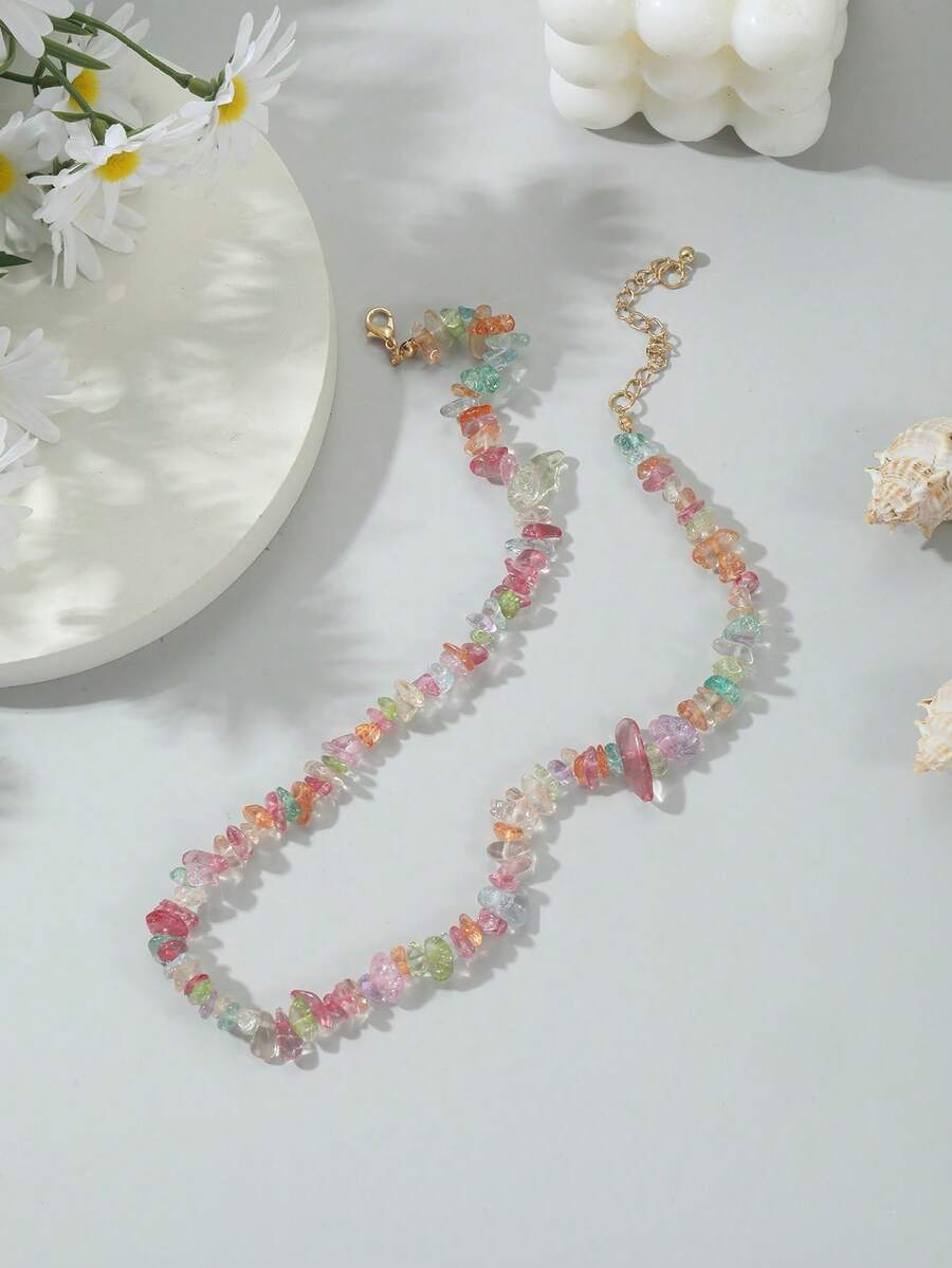 Goth 1pc Natural Asymmetrical Stone Beaded Necklace