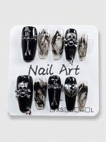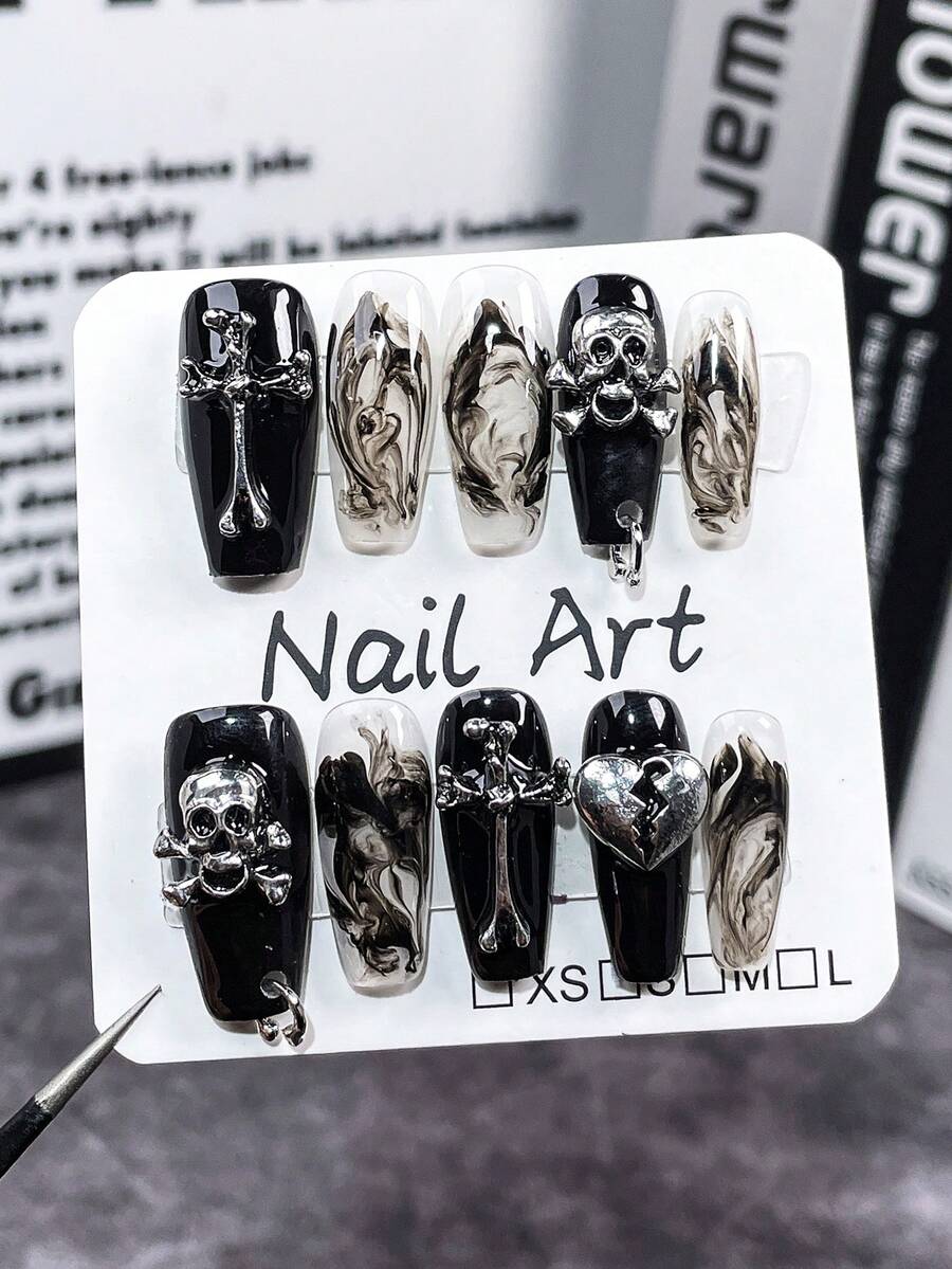 Goth 1pc Punk Style Black Skull False Nail Fragment