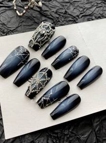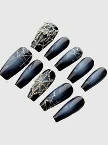 Goth 1pc Punk Style Blue Gradient Spider Web False Nail Tips