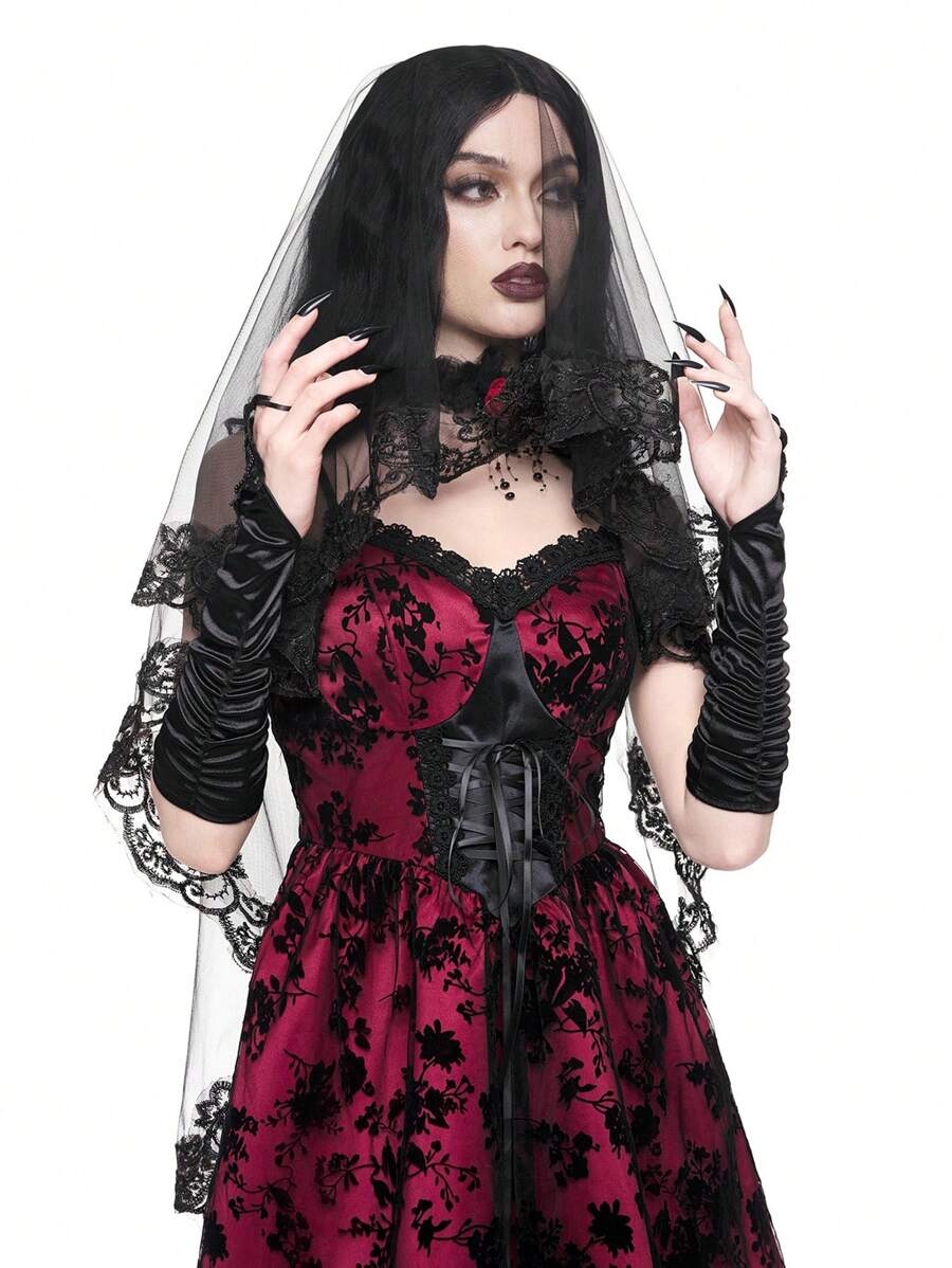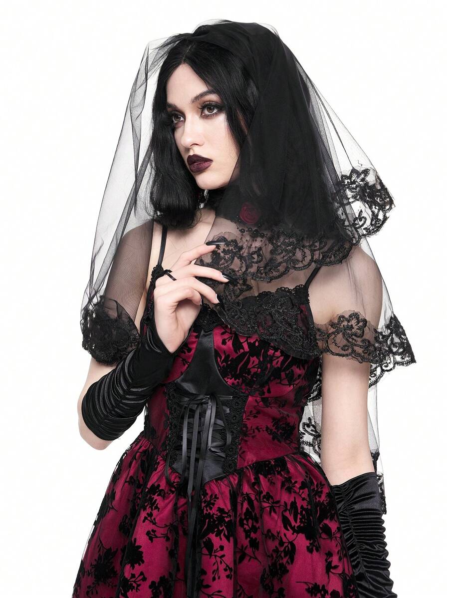 Goth 1pc ROSE Bride Style Black French Retro Lace Veil