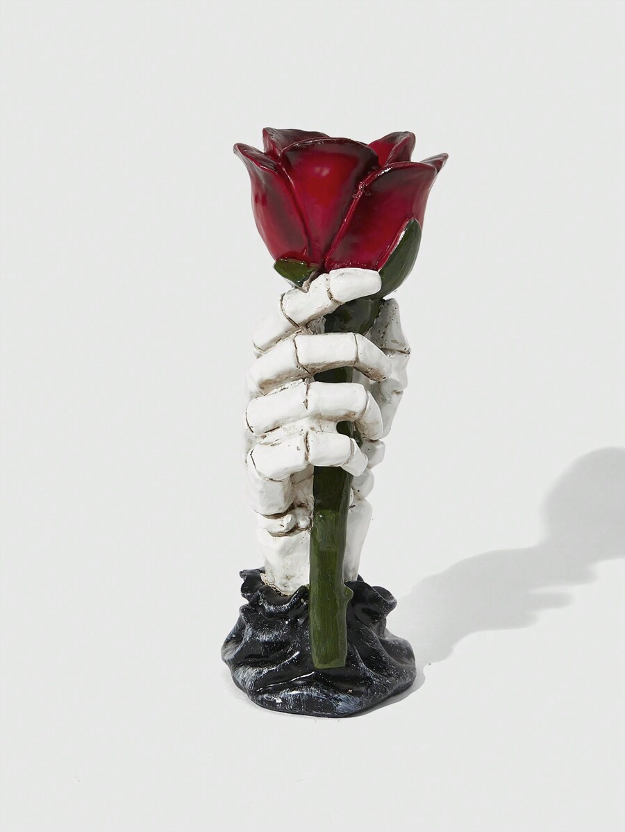 Goth 1pc Rose Finger Candle Holder Skeleton Decor Home Object, Textured Randomly Placed (Resin Material)