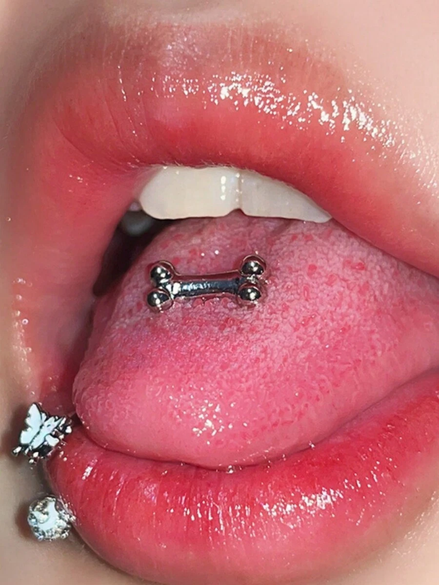 Goth 1pc Stylish 3D Bone Dog Unique Tongue Ring For Women