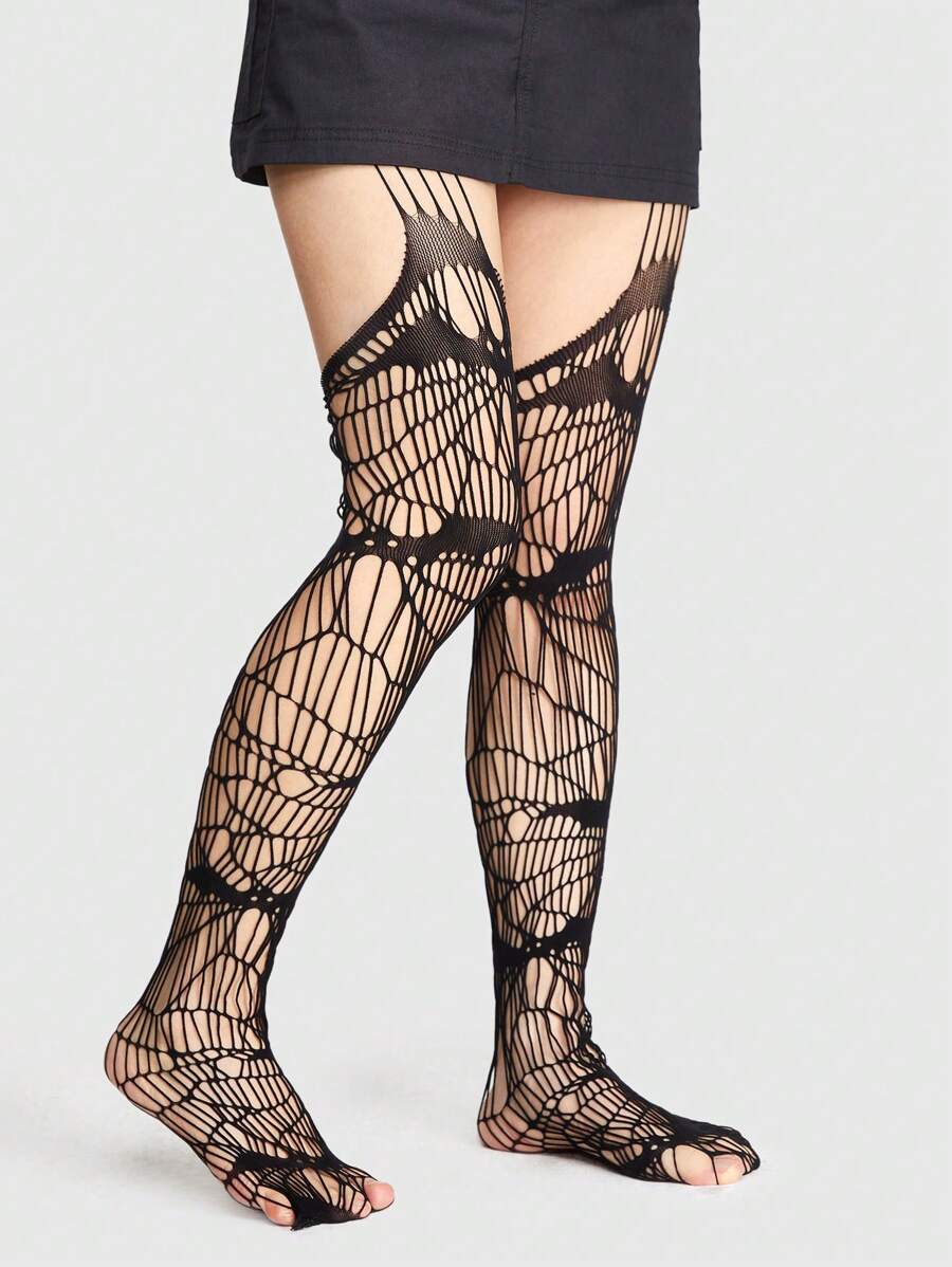 Goth 1pc Themed Fishnet Stockings With Garter Belt Design