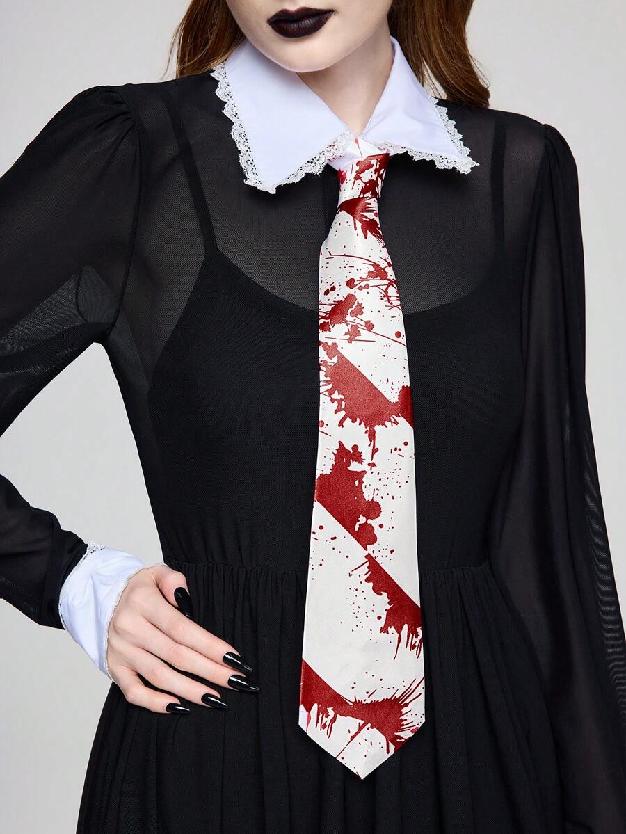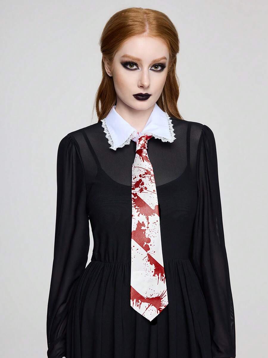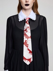 Goth 1pc Vampire Bloody Necktie, For Halloween Zombie Groom Cosplay (Random Bloody Spot Position)