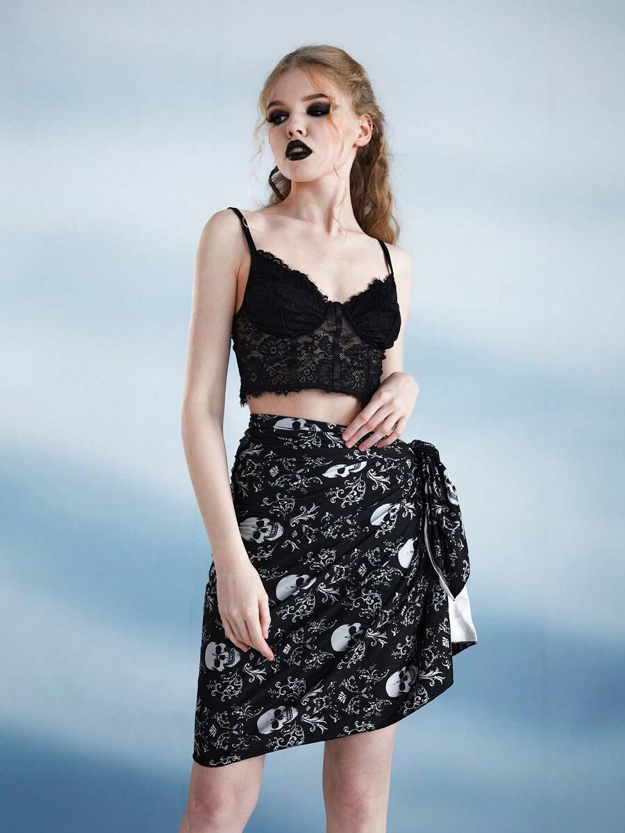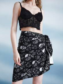 Goth 1pc Vintage Flower & Skeleton Print Beach Towel