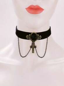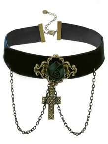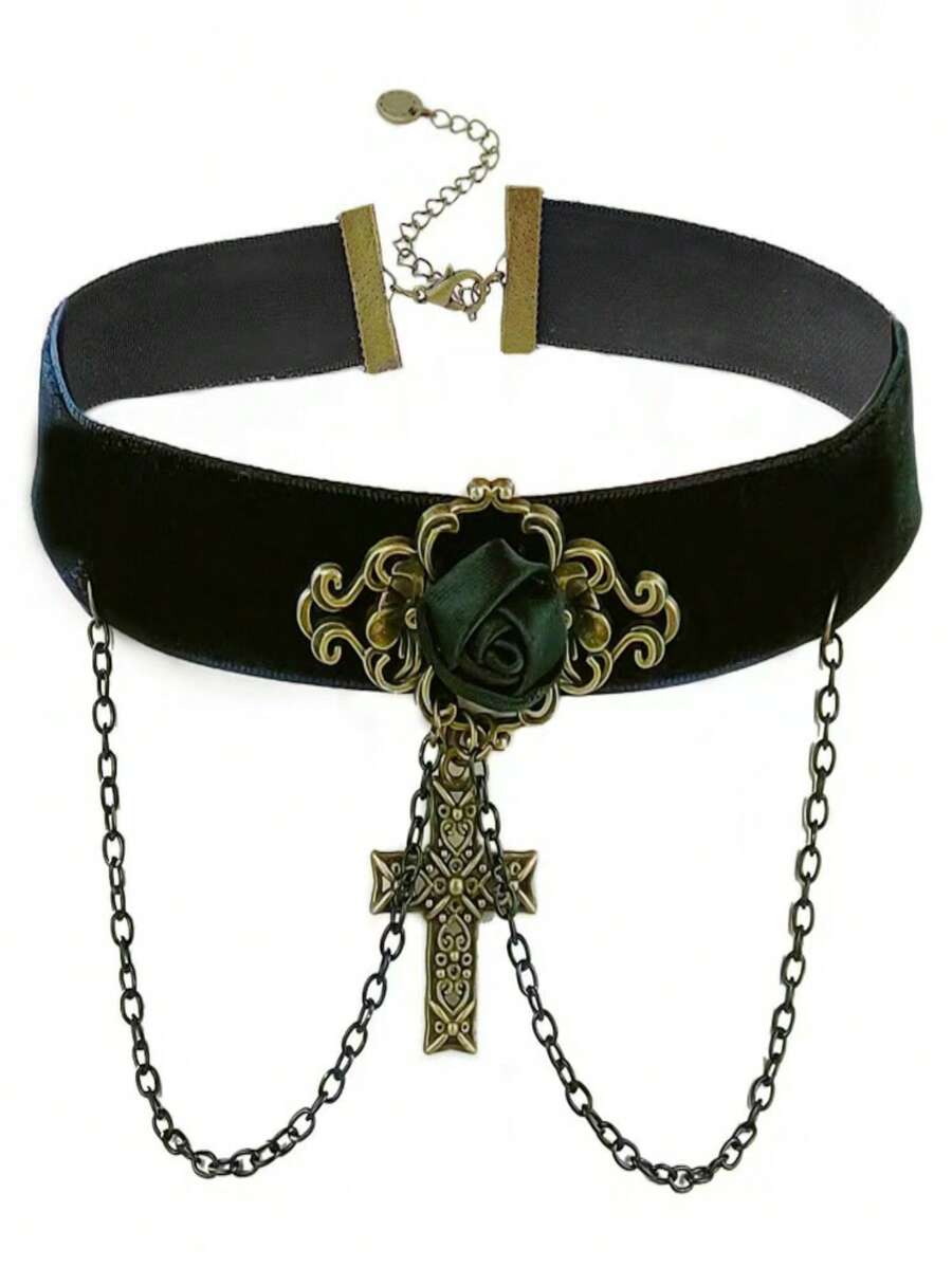 1pc Vintage Gothic Dark Punk Cross And Rose Chain Choker Necklace
