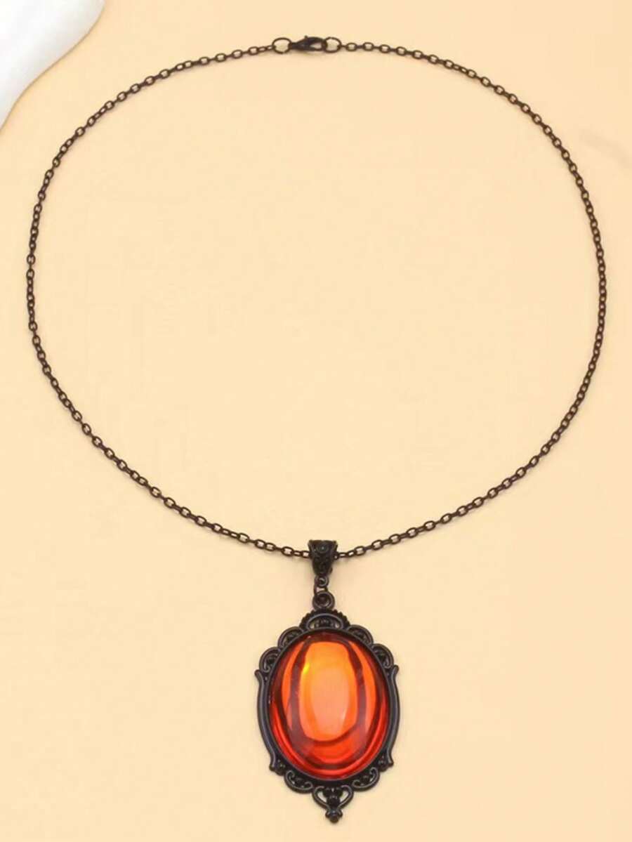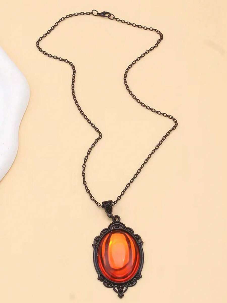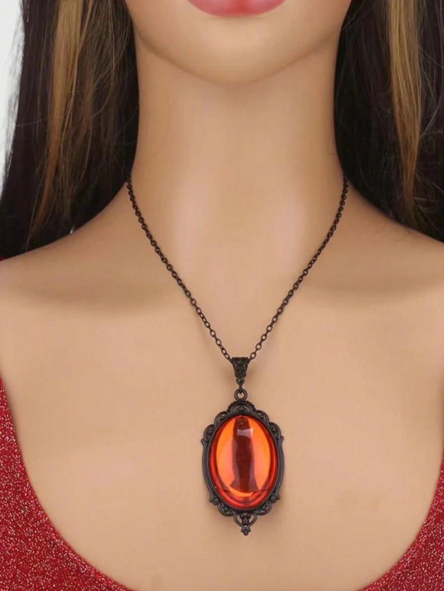 1pc Vintage Gothic Dark Red Quartz Crystal Pendant Necklace