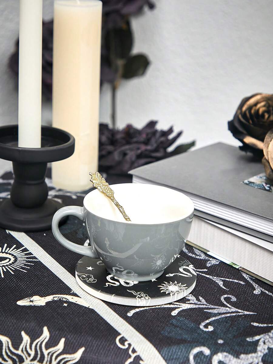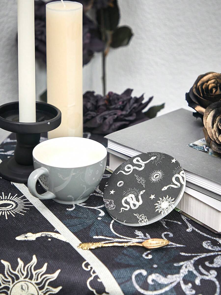 Goth 1pc Washable Silicone Coaster,Fashion Sun & Snake Graphic Table Cup Coaster