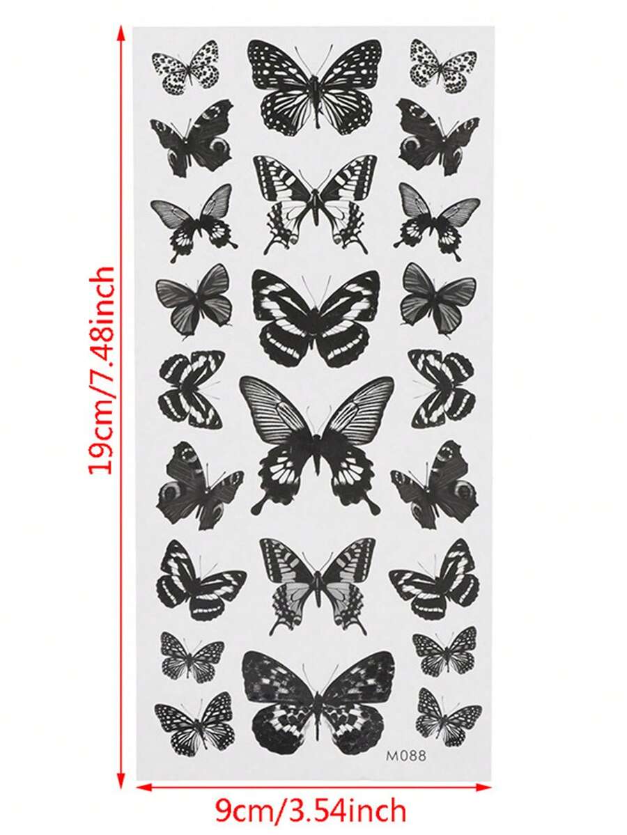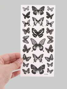 Goth 1pc Waterproof Geometric Butterfly Black And White Temporary Tattoo Sticker, Punk Style