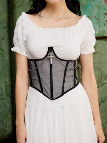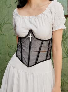 Goth 1pc Women Cross & Chain Decor Mesh Corset Belt