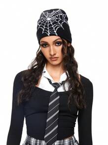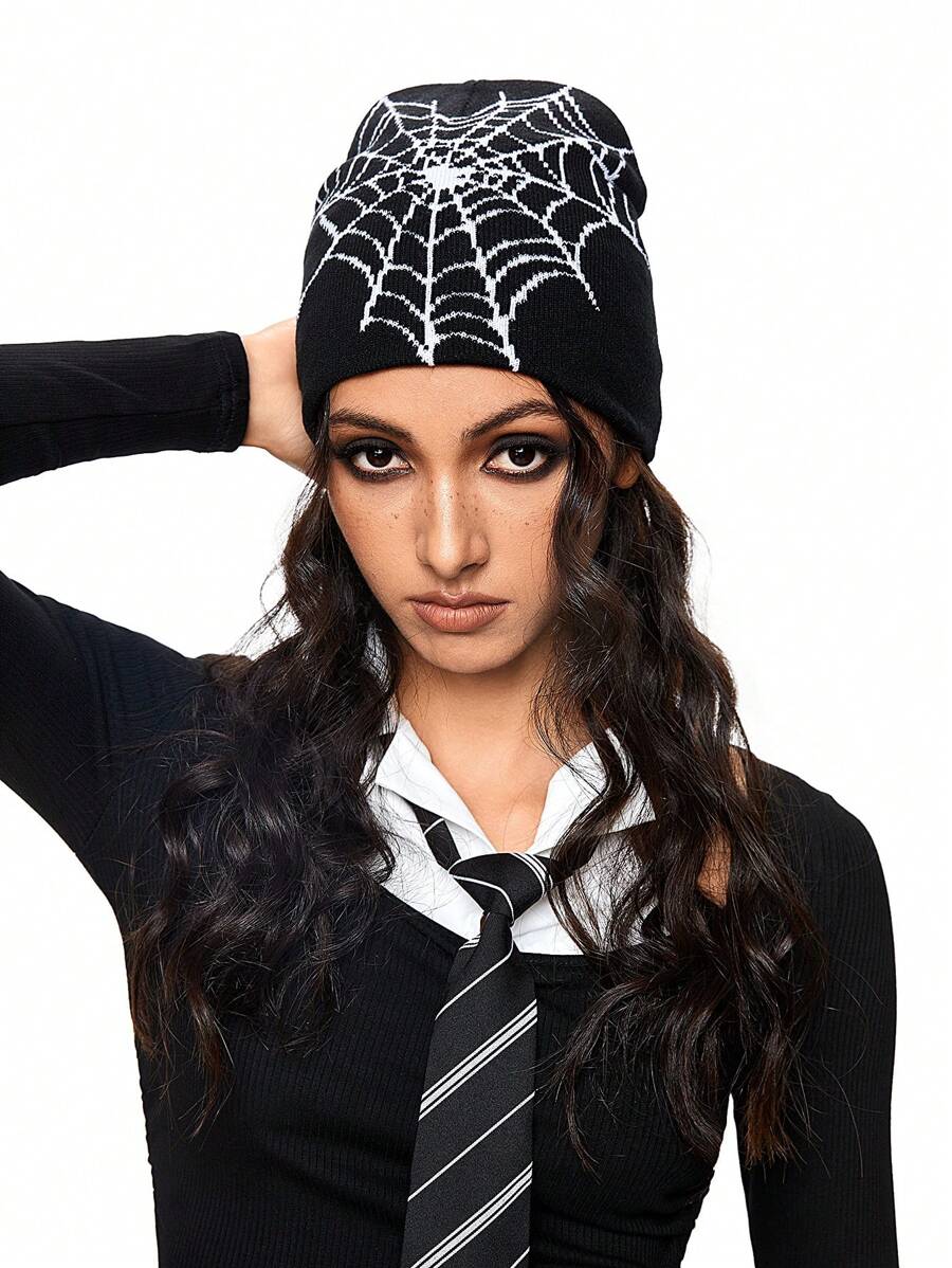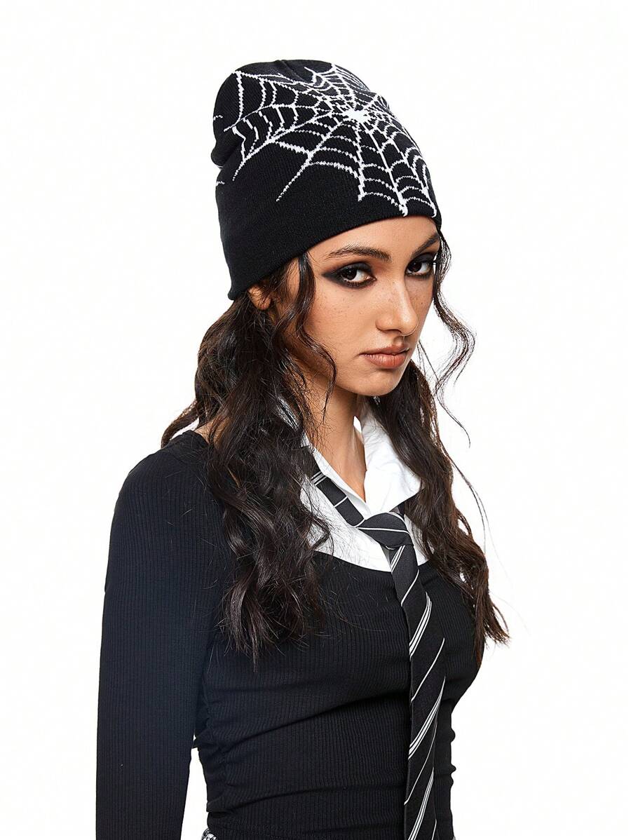 1pc Women Gothic Heart-Shaped Spider Web Knitted Beanie Hat For Halloween
