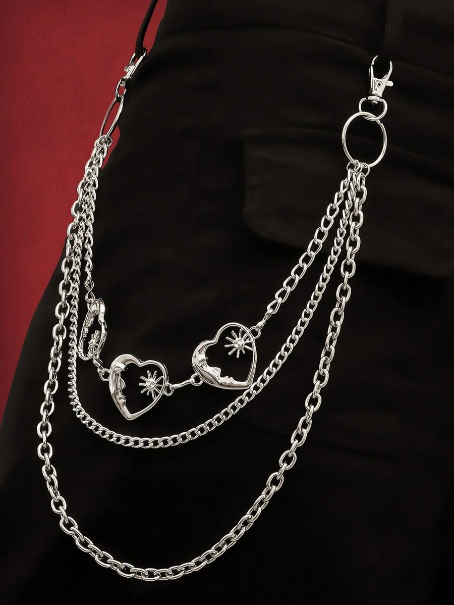 Goth 1pc Women Heart Design Sun & Moon Decor Layered Waist Chain