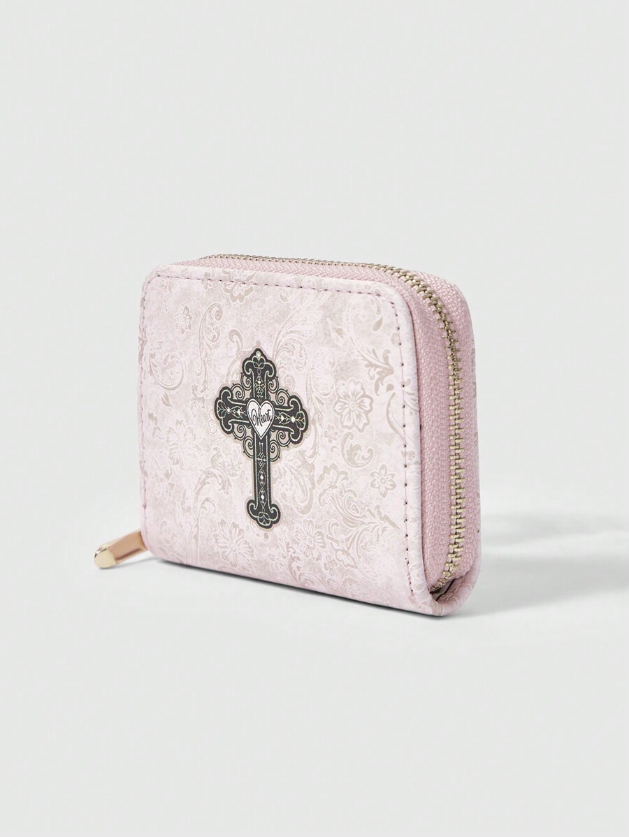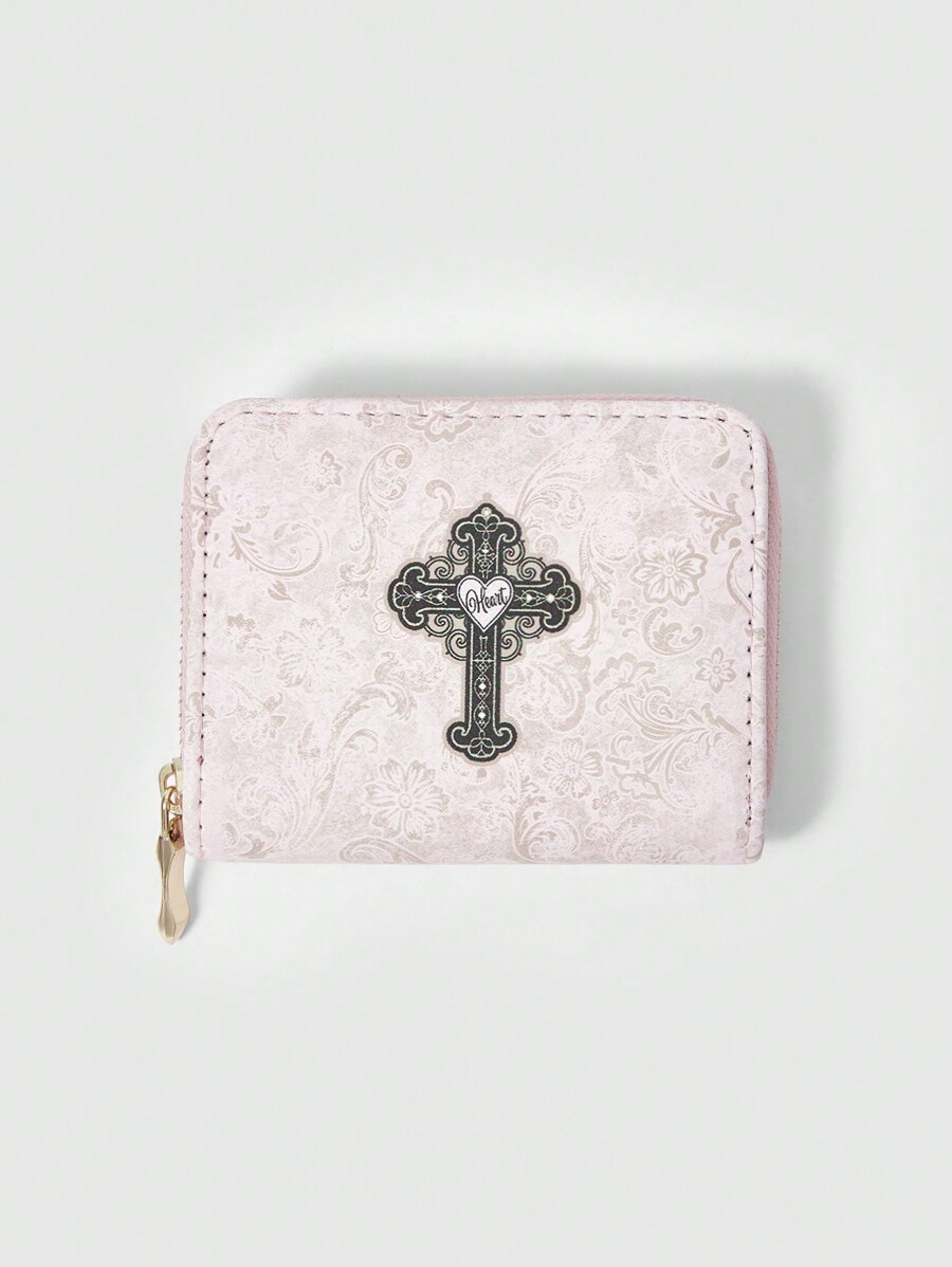 Goth 1pc Women Minimalist Heart Cross Zipper Coin Purse