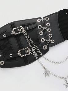 1pc Women's Black Lace Chain Hollow Five-Pointed Star Tie Decor Goth Style Elastic Waist Belt Dress Accessory, Halloween Costume Accessory, Waist Cincher
