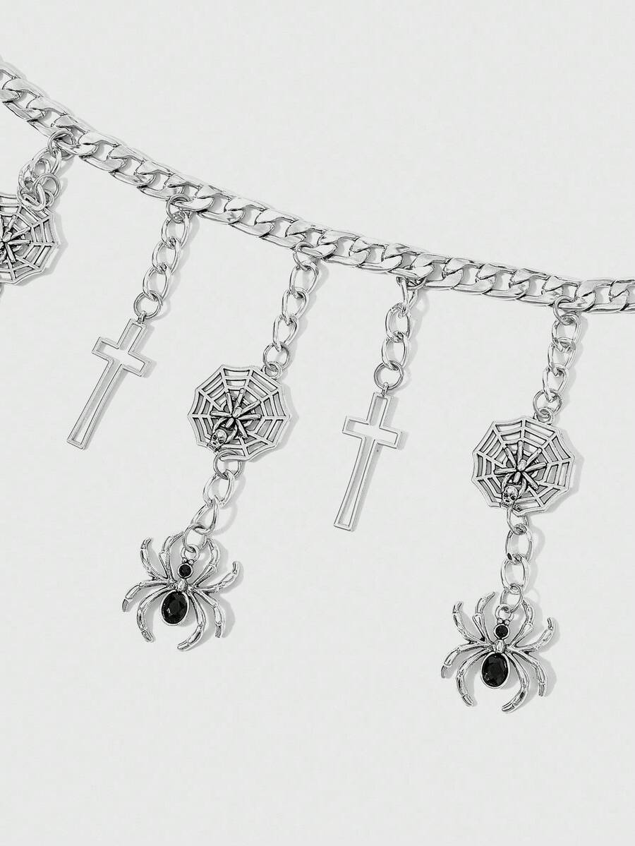 Goth 1pc Women's Silver Spider Web & Spider Decor Accessories, Punk Style Tassel Waist Chain, Versatile For Daily Wear And Halloween