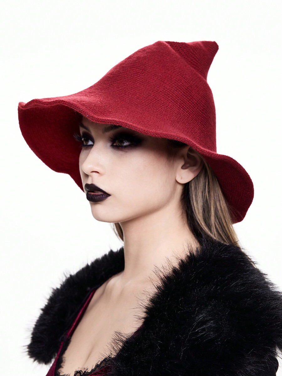 Goth 1pc Women's Solid Color Fashionable Wide Brim Funny Hat