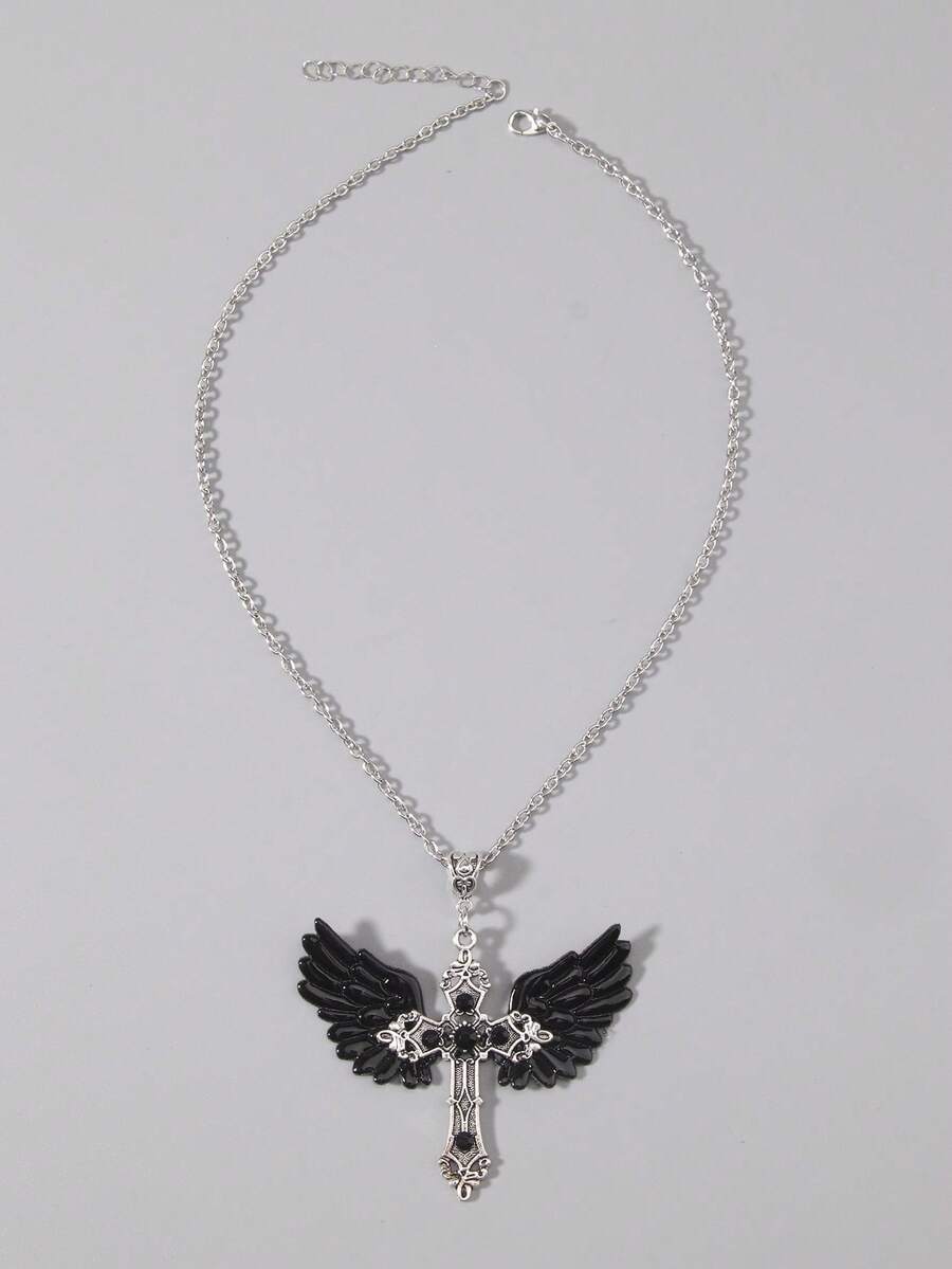 1pc Y2K Fashion Gothic Angel Wings Cross Necklace, Perfect For Daily Wear, Halloween