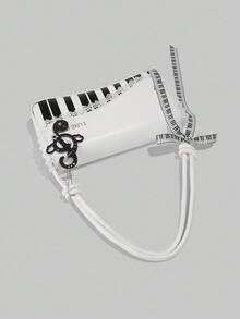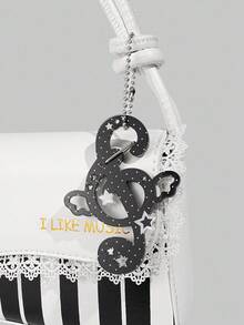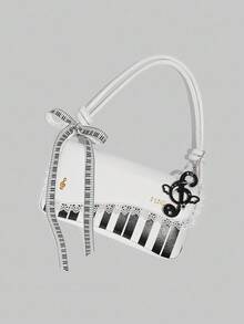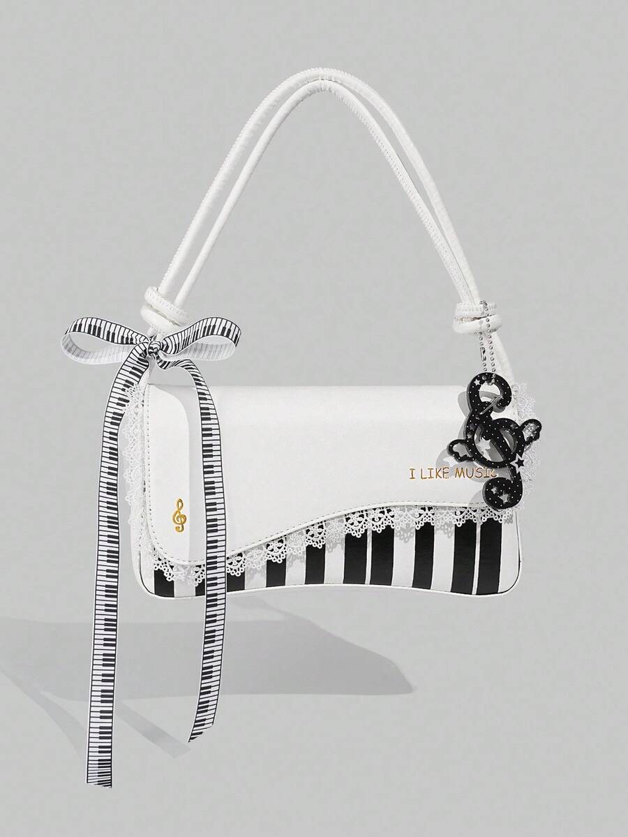 Goth 1pc Y2K Music Festival Black & White Piano Key Pattern Shoulder Bag, Music Note & Star Subculture Handbag, Bow & Lace Decor Underarm Bag, Student Daily Backpack