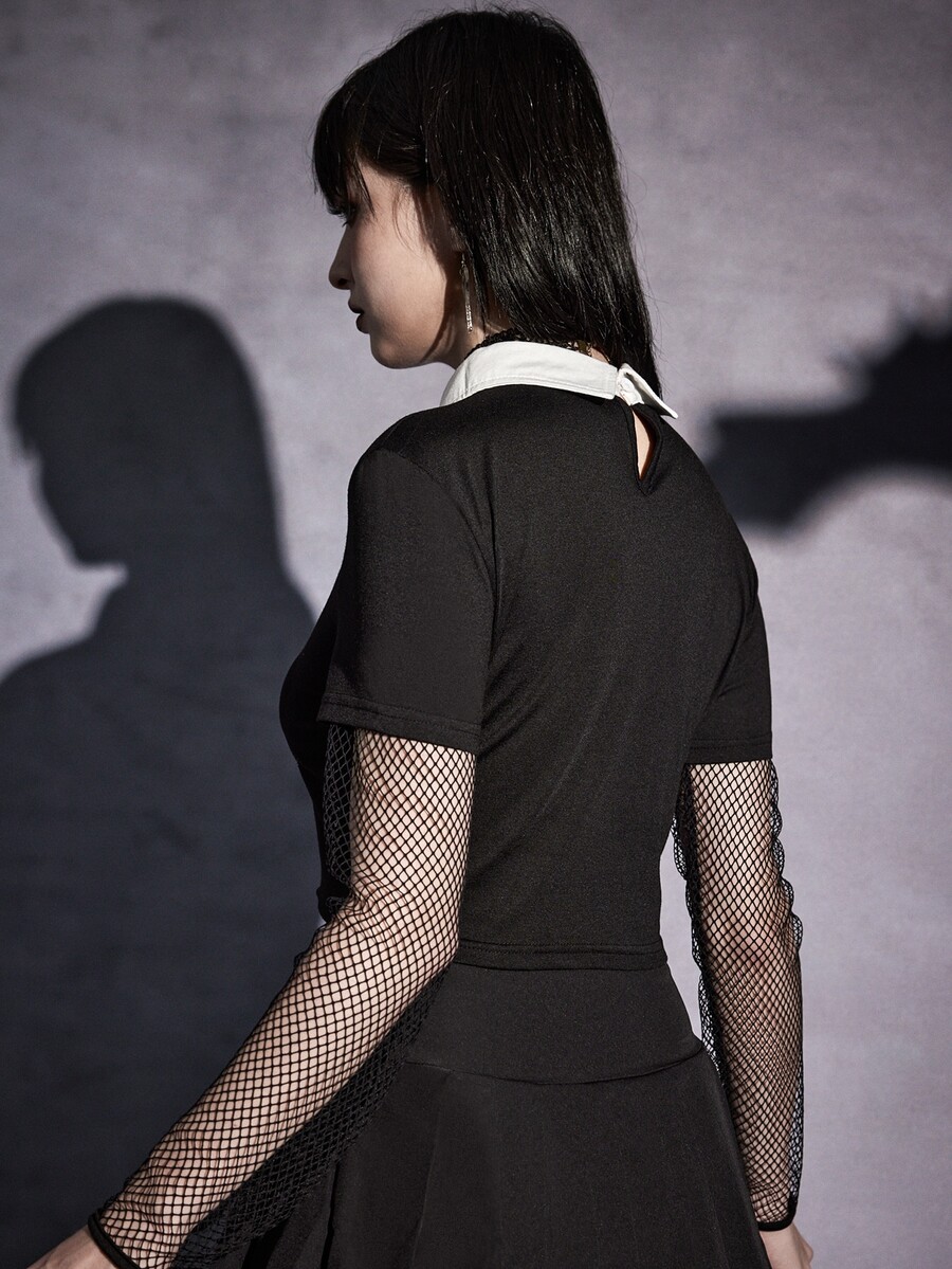 Goth 2 In 1 Letter Sun & Moon Graphic Contrast Mesh Crop Tee