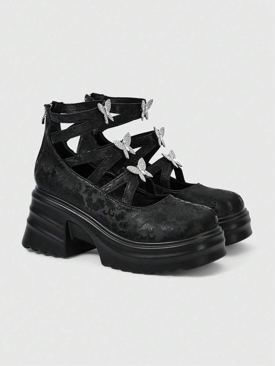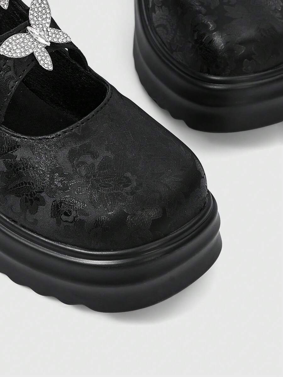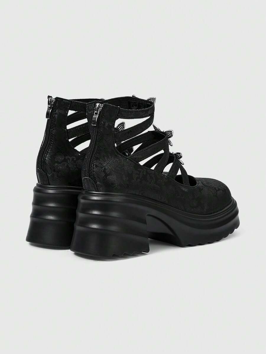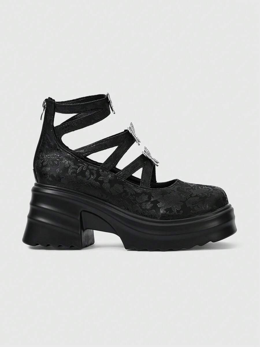 Goth 2024 New Fashion Mary Jane Street Style Women's Shoes, Thick Heel Chunky Platform Round Toe Casual Slip-On Pumps, Versatile For Spring Commute