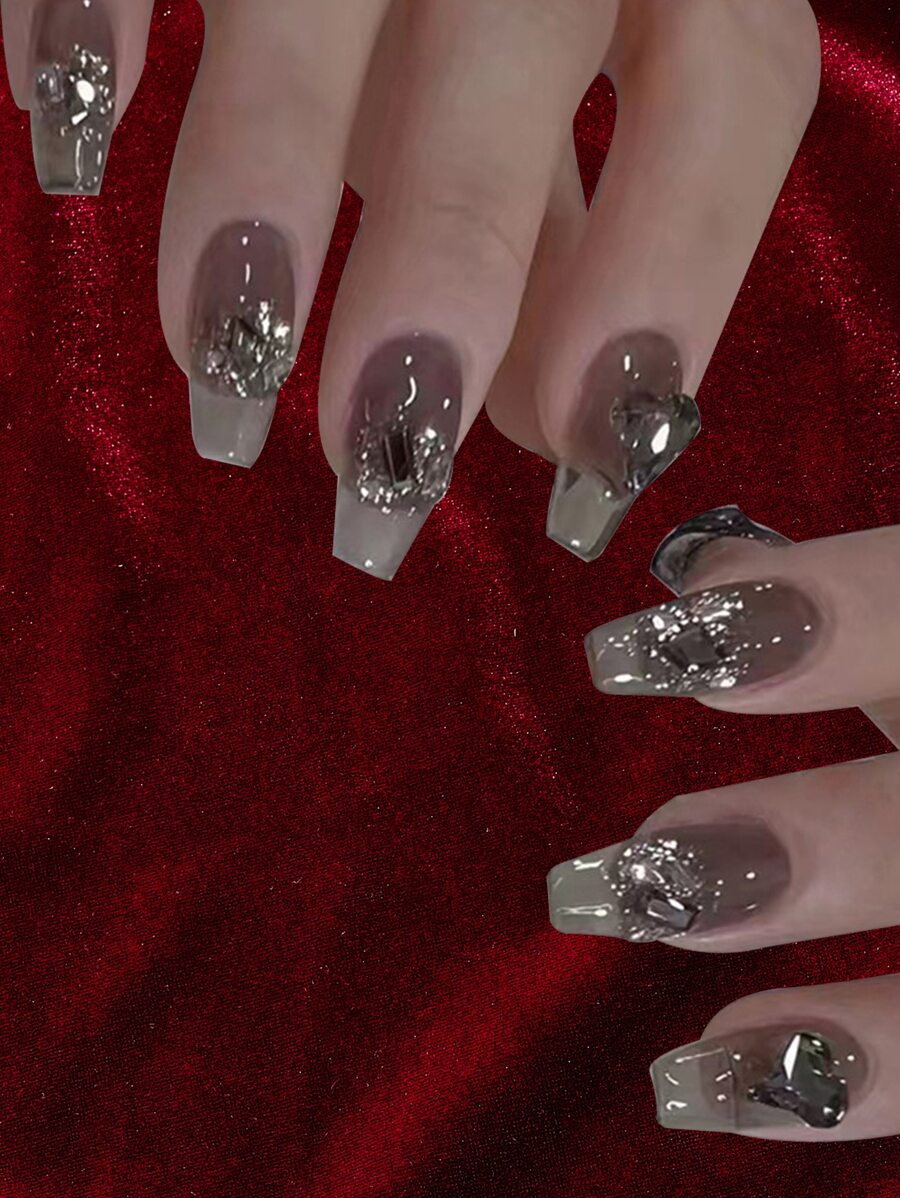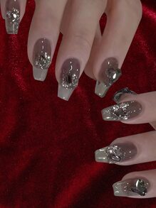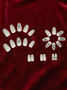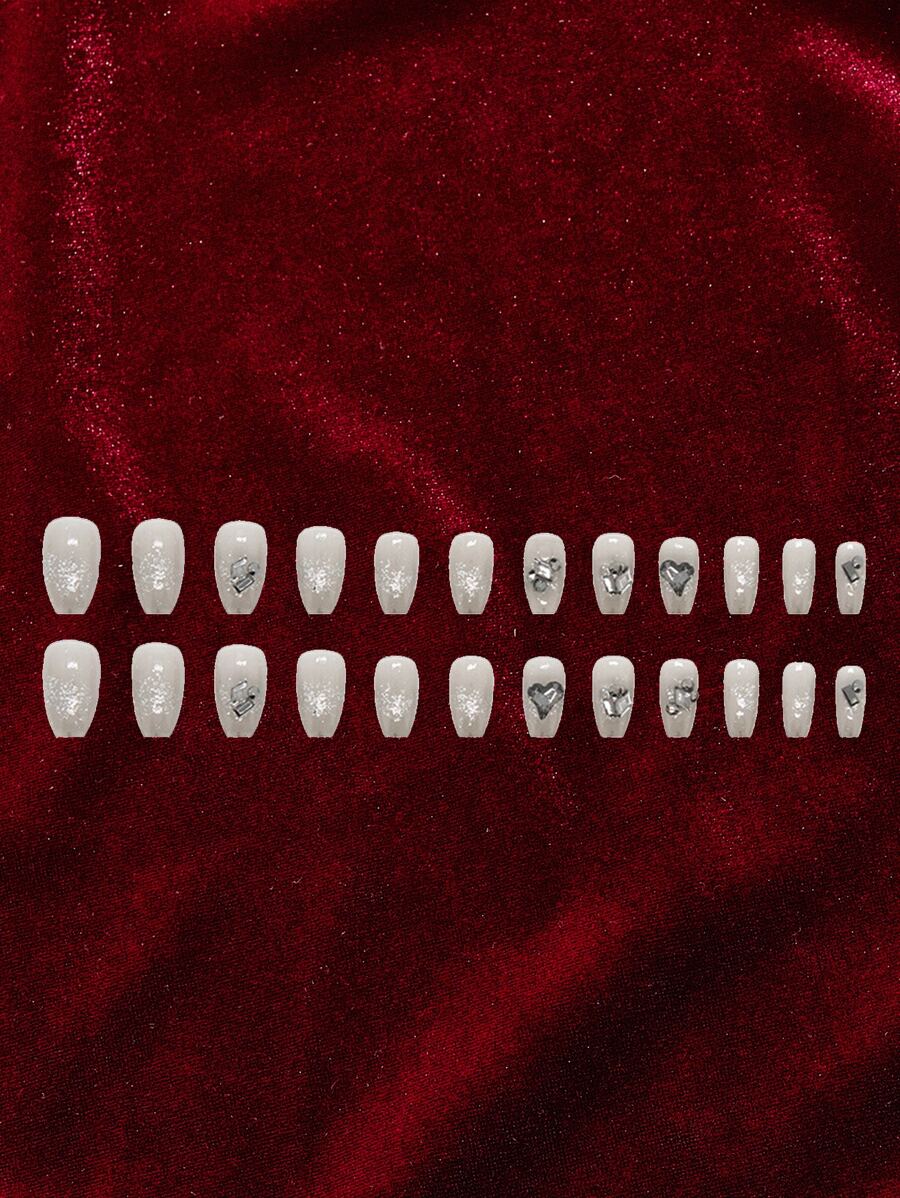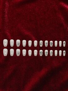 Goth 24pcs Coffin 3D Heart Decor Fake Nail & 1sheet Tape