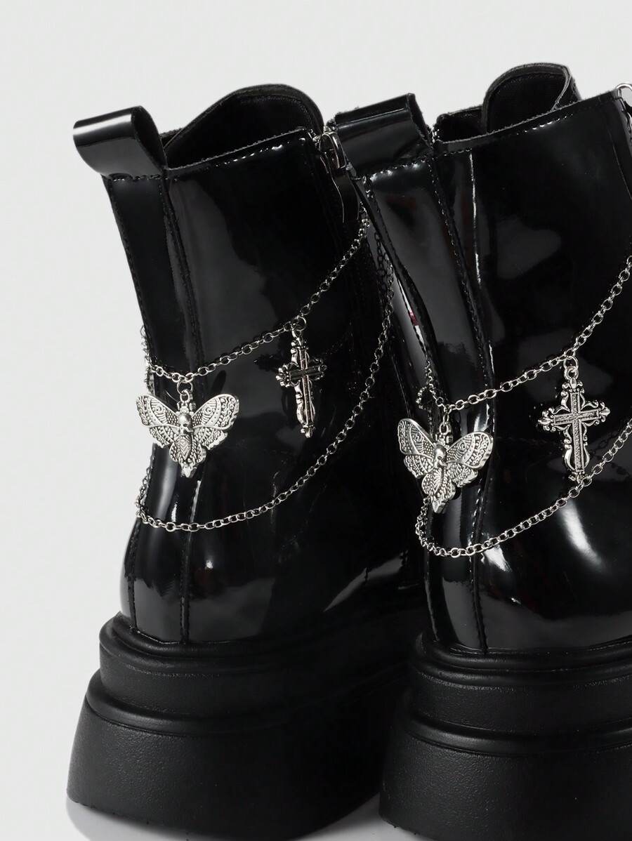 Goth 2pcs Cross Pendant Double Layer Shoelace Decoration Fall