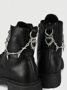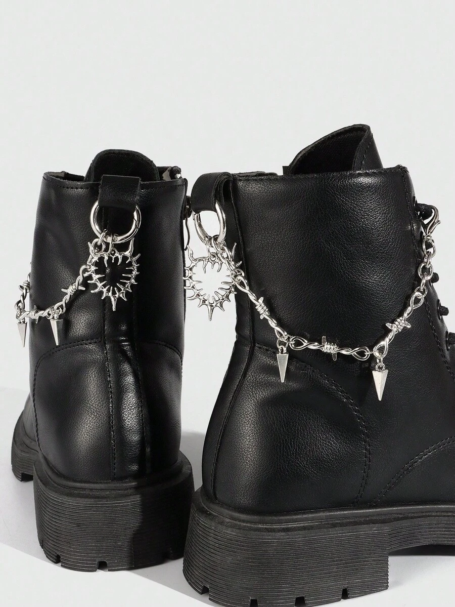 Goth 2pcs Gothic Punk Style Dark Rivet Heart Chain DIY Shoe Decorations, Add Mysterious Vibe To Your Shoes, Suitable For Women And Men - Compact, Delicate, Multifunctional Fashion Item, Halloween Atmosphere Shoe Charms