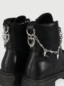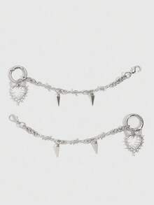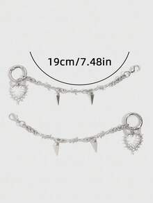 2pcs Gothic Punk Style Dark Rivet Heart Chain DIY Shoe Decorations, Add Mysterious Vibe To Your Shoes, Suitable For Women And Men - Compact, Delicate, Multifunctional Fashion Item, Halloween Atmosphere Shoe Charms