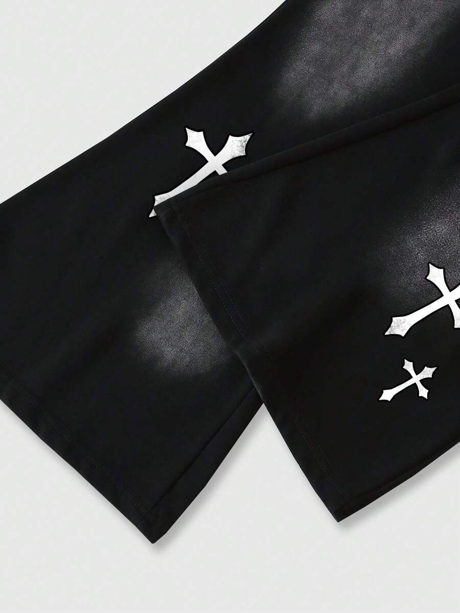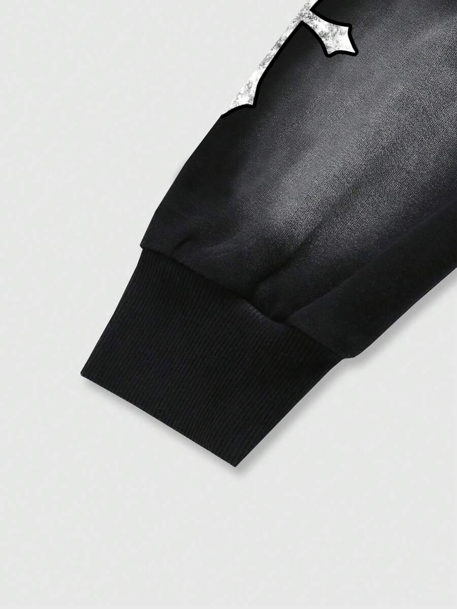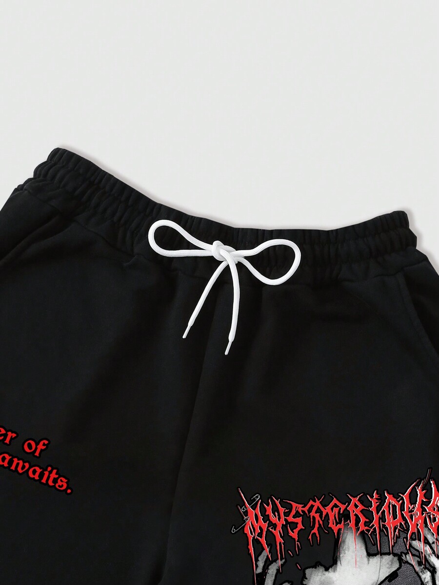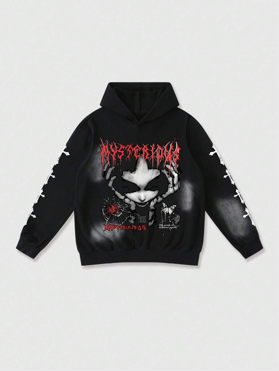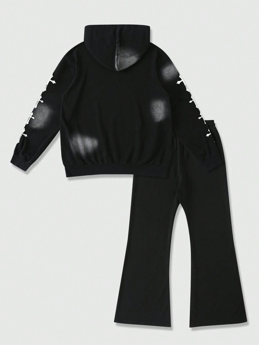 Goth 2pcs Men Letter & Figure Print Hoodie Sweatshirt And Drawstring Sweatpants Tracksuit