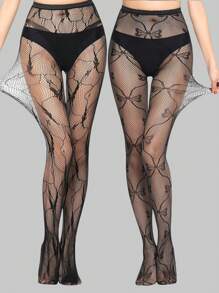 Goth 2pcs Mori Style Butterfly Patterned Fishnet Stockings, Perfect For Daily Wear And Dance Parties