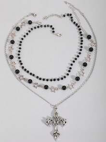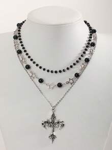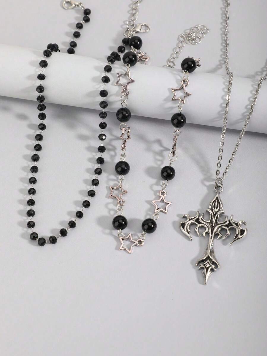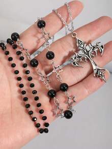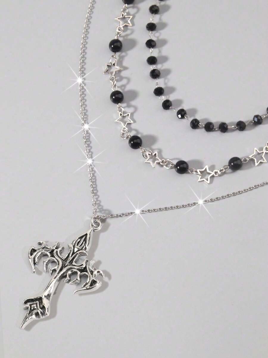 Goth 2pcs Punk Vintage Style Rhinestone Star Pendant Necklace, Luxury Iced Out Double Layer Star Chain Necklace, Streetwear Choker