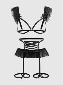 Goth 2pcs/Set Women's Sexy Lingerie Garter Belt Set With Stockings