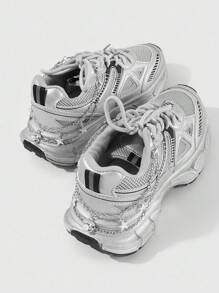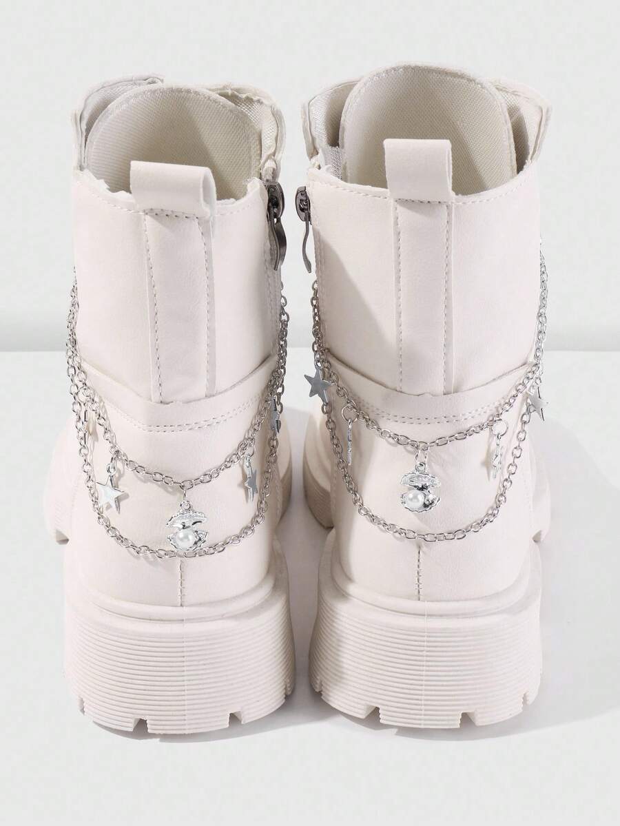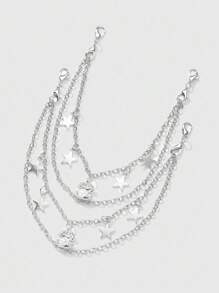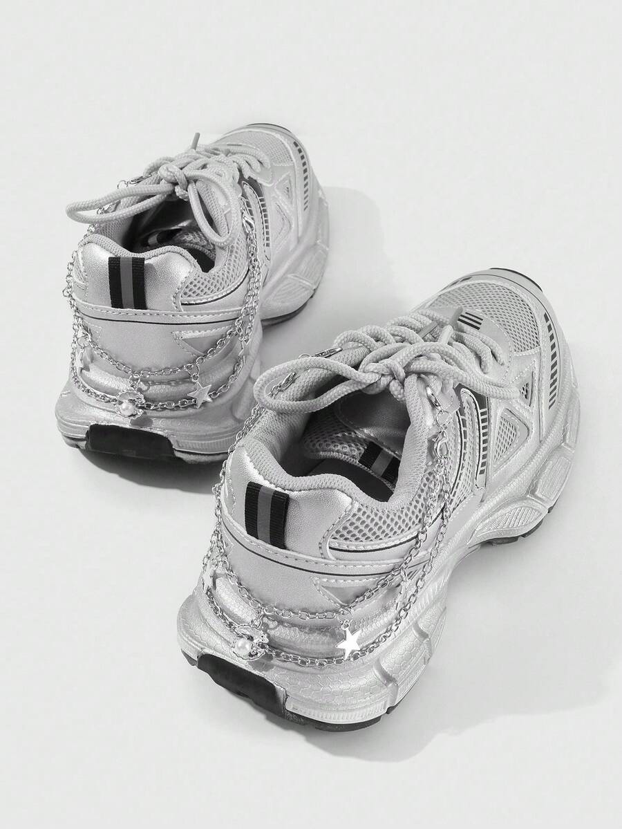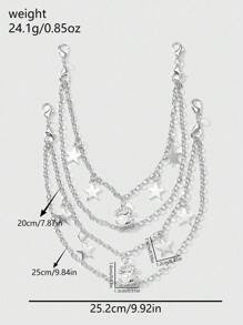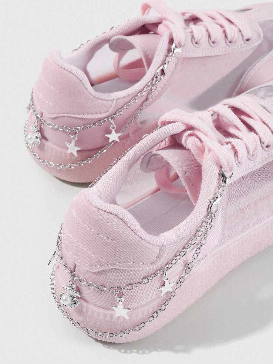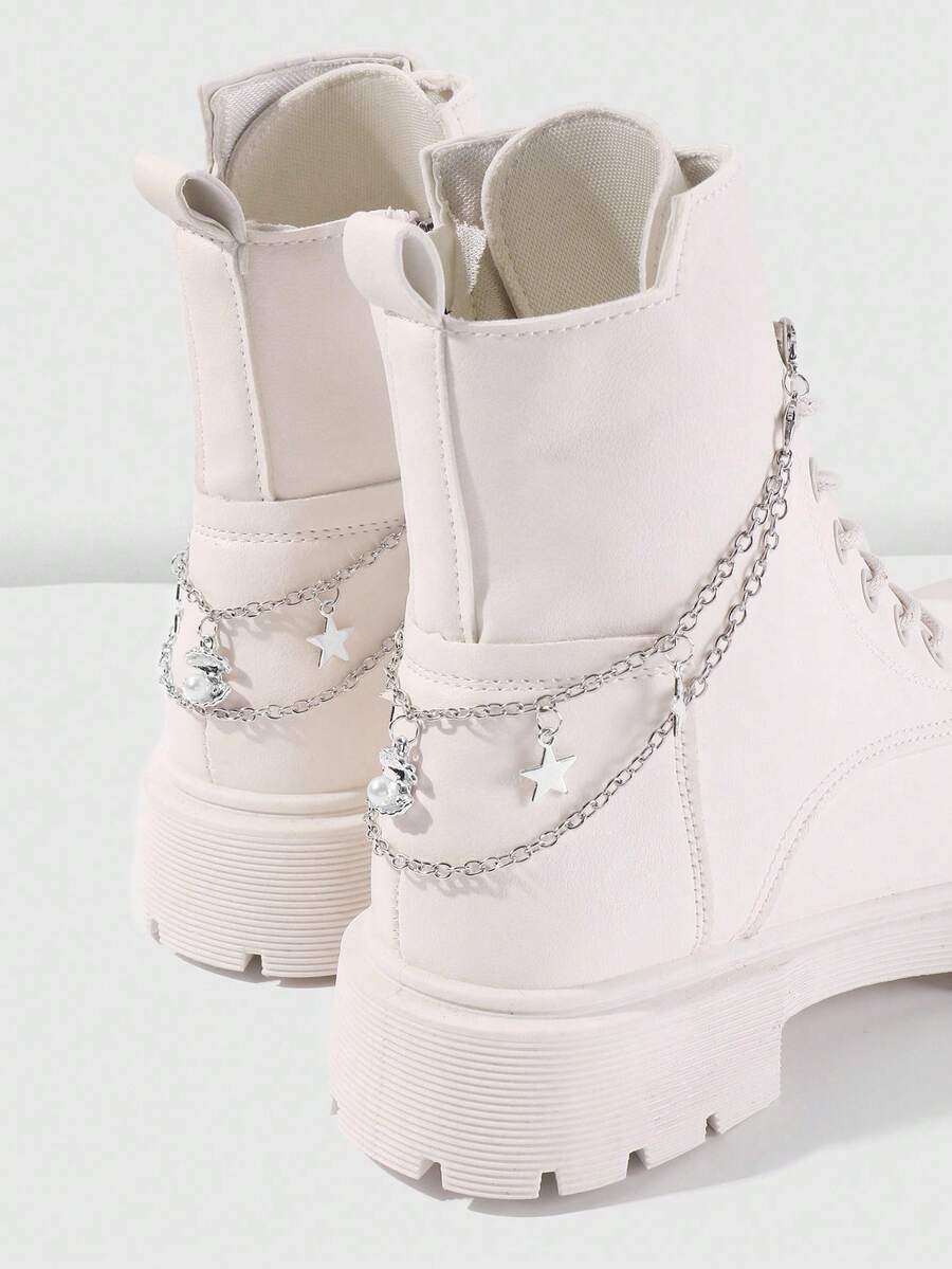Goth 2pcs Y2K Minimalist Chic Versatile Hollow Silver Chain Stars & Faux Pearl Shell Charm Double Head Adjustable Lobster Clasp Shoe Lace Decoration, Suitable For Women/Girls Daily Outfit And Shoes, Holiday Gift